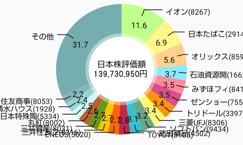 R7年9月末のポートフォリオ(管理人名義の日本株)