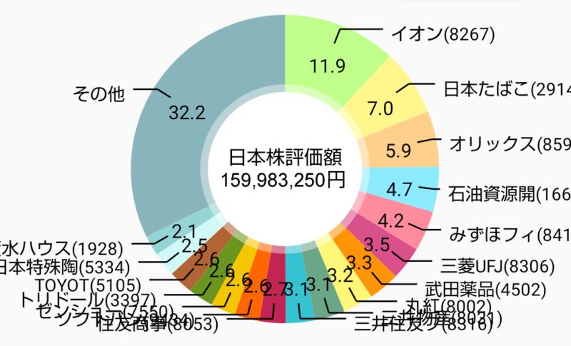 R8年1月末のポートフォリオ(管理人名義の日本株)